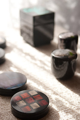 他にも、漆ジュエリーのいろいろ、扇子や小箱、器、棗や香合・茶杓などお茶道具類も展示します。